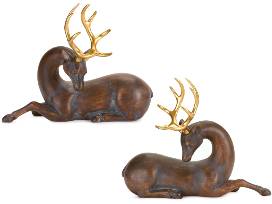 Melrose Set of 2 Laying Deer with Gold Antlers Christmas Figurines 14.5" Made of Light metal Weight 5lbs