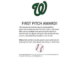 Calling all baseball lovers! Make your kid's dream come true by throwing out the first pitch at the Glenbard West High School baseball game. The winner will receive the GW First Pitch Award and be a baseball VIP for the day! Winner will schedule the first pitch with the GBW team.