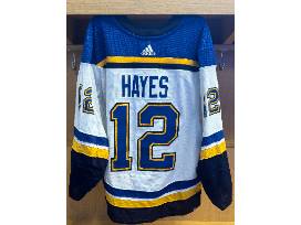 Bid on #12 Kevin Hayes' game-worn set 1 road jersey from the 2023-24 season. This jersey was worn during select road games played in between the dates 9/23/23 and 11/28/23. This jersey will come with a sheet featuring the exact games this jersey was worn in.