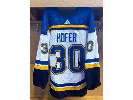 Bid on #30 Joel Hofer's game-worn set 1 road jersey from the 2023-24 season. This jersey was worn during select road games played in between the dates 9/23/23 and 11/28/23. This jersey will come with a sheet featuring the exact games this jersey was worn in.