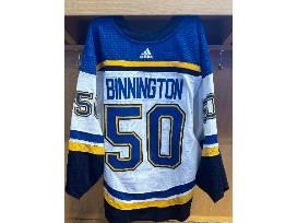Bid on #50 Jordan Binnington's game-worn set 1 road jersey from the 2023-24 season. This jersey was worn during select road games played in between the dates 9/23/23 and 11/28/23. This jersey will come with a sheet featuring the exact games this jersey was worn in.