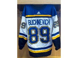 Bid on #89 Pavel Buchnevich's game-worn set 1 road jersey from the 2023-24 season. This jersey was worn during select road games played in between the dates 9/23/23 and 11/28/23. This jersey will come with a sheet featuring the exact games this jersey was worn in.