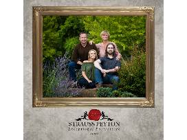 The Strauss Peyton Family portrait certificate (overall valued at $600) includes a portrait experience for a family portrait session in our studio or at our studio park (valued at $250). You will be thrilled by the unique portrait outcome because of a personal advanced planning meeting with you. The remaining value ($350) will be credited toward the portraits you fall in love with or you may select a portrait that is sized 8x10 or smaller.
