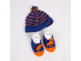 The perfect bundle for your little bundle featuring a baby basket from Dillard's and professionally knitted baby sneakers and cap from Natural State Knits.