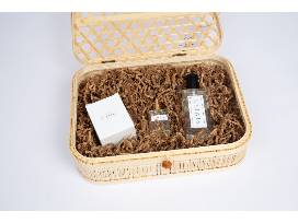 Package includes a medium gift bundle from Shop Simple Designs, 14k gold Pebble Pearl earrings from Kristin Chase and a Lavender Pedicure from Blush Nail Bar.