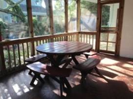 This cozy, yet spacious beach cottage is great for families. It has a newly renovated large eat-in kitchen, dining room, living room, and den. A large screened-in porch is ideal for reading or relaxing away from the sun and for comfortable outdoor dining and evening enjoyment. The cottage has one of the few remaining large backyards on the North End. Enjoy relaxing in the hammock or playing a game of ping pong.