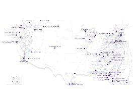 Please see the route map. Yellow lines note regular routes and blue are seasonal routes.