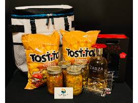 Sip sip hooray! Your perfect tequila party pack: a bottle of Zarza Reposado, two shot glasses, plus fresh salsa and chips to make your taste buds dance!