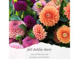 Our Fall Dahlia Share will give you magnificent blooms each week. You'll have your choice of varieties, colors and forms to choose from. It's a show stopper!