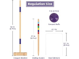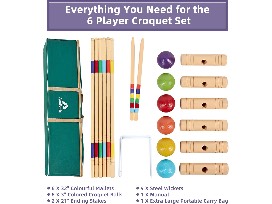 32In Six Player Croquet Set with Deluxe Premiun Pine Wooden Mallets, Colored Ball, Wickets, Stakes - (Large Carry Bag Including)