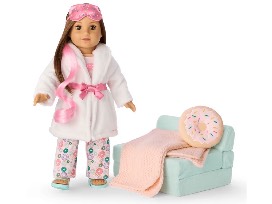 Sweet dreams start here! This snuggly donut-themed set has everything dolls need for a sleepover: