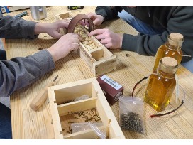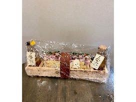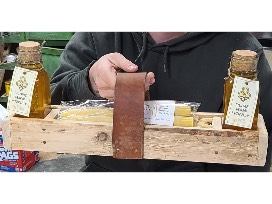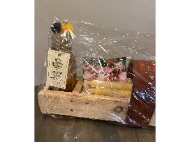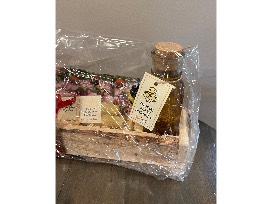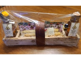 They made a wooden box from a pallet that they put 2 lbs. of Salem honey, 2 beeswax candles and wildflower seeds in for the auction. Honey and beeswax from Salem bee hives.
