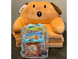 Kids Foldable Lounge Sofa/Chair & Backpack w/ Snacks and Books