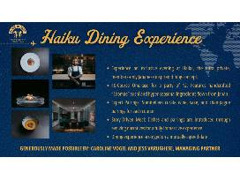 Experience an exclusive evening at Haiku, the ultra private, members-only Japanese inspired dining concept. This auction presents an opportunity for a party of 12 to indulge in Haiku's contemporary take on Japanese "Kaiseki Inspired" cuisine, featuring the finest ingredients from Japan. Limited to just 60 curated Members, Haiku is considered the most exclusive and immersive dining experience in Miami. A uniquely original concept, Haiku showcases a modern take on