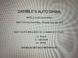 Certificate good for (1) Sedan or Truck. To include (1) Wash, (1) Vaccum (1) Detail