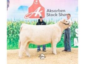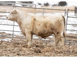 Our first calf born a year ago, this is a husky and stout bull with good looks and muscle; he is the first calf from the gorgeous young cow shown here. He is a maternal brother to the dam of Lot 25 and offers Top 15% WW and YW with Top 20% TSI, CW and REA.