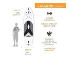 Stable and affordable, the Lifetime Horizon Stand-Up Paddleboard is perfect for beginning and intermediate paddlers. An integrated universal accessory mount lets you take a waterproof camera, speaker, or any other mountable accessory with you on the water. An EVA deck covering provides great foot traction. A center carry handle and rigid outer handles make for easy transport to the waterfront.