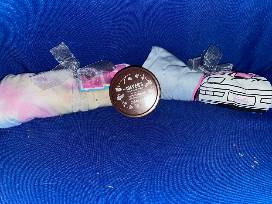 This unique gift is presented in a storage basket with a bouquet of lavender.