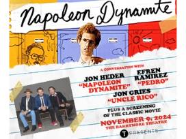 This unique evening includes a full screening of "Napoleon Dynamite" followed by a lively, freewheeling, discussion with fan-favorite cast members; Jon Heder (Napoleon Dynamite), Jon Gries (Uncle Rico) and Efren Ramirez (Pedro).