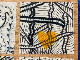 Paper on wood panel with a protective coat.