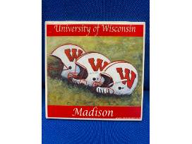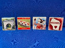 Set of four colorful ceramic UW-themed coasters.