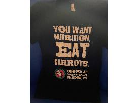 - 2 Chocolate Shoppe T-Shirts: one is black, size medium, the other is gray, size extra small