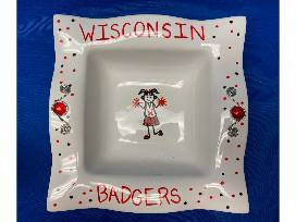 - 4 plastic Wisconsin-themed stemless wine glasses