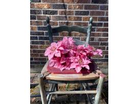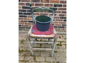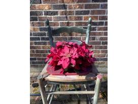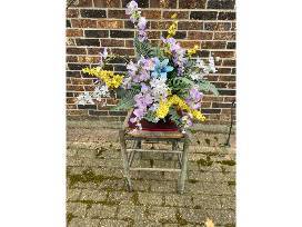 This vintage chair has been converted to a flower stand that would be a lovely display on anyone's front stoop!