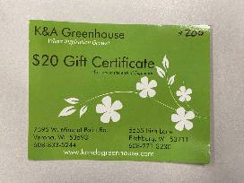 Included with this item is 2 K and A Greenhouse gift cards valued at $20 each.