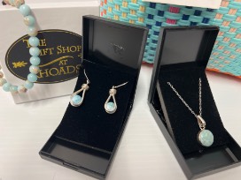 - Larimar necklace, earrings and bracelet set