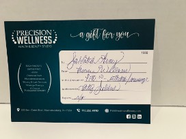 - $100 gift card for Aesthetics/Massage at Precision Wellness