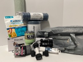- Gray Ceneda Gym Bag with small makeup bag