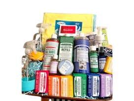 Dr. Bronner's Assorted Products - multi purpose soap, biodegradable cleaner, hand soaps, body soaps, lip balms, hand sanitizer, spray bottles, foaming pumps & collapsible carryall basket.