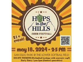 Two (2) Hops in the Hills Early Access Tickets. May 18th Event in San Eiljo from 1pm-5pm. *Must be 21+ to attend this event-no pets or children allowed