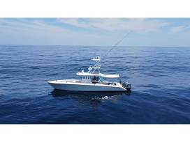 The C-VENTURE is a 2016 39' Venture Open Fisherman powered with triple 300 HP Yamaha Outboards, and is equipped with up-to-date electronics, bean bags, stereo, and a bathroom. It cruises at 37-40 mph and has a very comfortable ride.