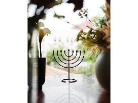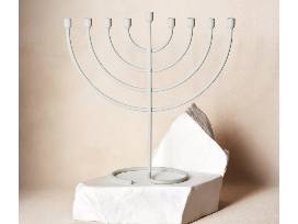The steel Chanukiah reinterprets a classic form through the use of industrial materials and process. The steel tubes that form the arms of the chanukiah are swaged open with friction, creating the space to hold a candle and translating this often overlooked technique into a decorative detail. The nine removable cups that hold the candles allow for easy cleaning and ensure a secure hold.
