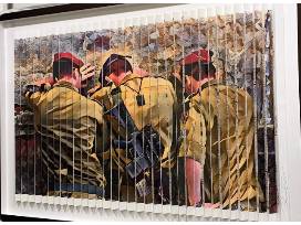 3D image changing artwork, signed by the artist. Framed in custom shadow box frame measuring 46x30 inches.