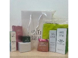 Sonya Dakar Skincare Package includes organic omega oil, rubica hydrating toner, energizing eye balm, nano hydrator moisturizer, lip balm, rose gold radiance skin mask, flash facial exfoliating treatment, silver clarifying wash, and a pouch for all products.