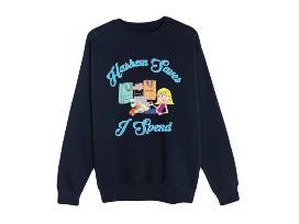 This navy crewneck is perfect for anyone who loves God but can't resist a good splurge. Featuring the iconic Lizzie McGuire cartoon character surrounded by designer bags and luxury shopping. Show off your faith and your love for designer with this stylish and witty crew neck.