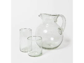 The accompanying margarita glasses are beautiful hand-etched flowers and leaves add enchanting texture and dimension to the recycled glass.