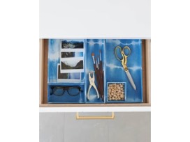 Use for: Organizing shallow drawers of pens, sticky notes, stationery, jewelry, and odds and ends.
