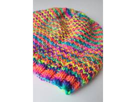 Bright, squishy, warm merino yarn knit into a hat to bring color to even the grayest of days. Sized for adult heads with ribbed band. Hand wash to keep colors vibrant, but wool will not shrink in washer.