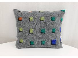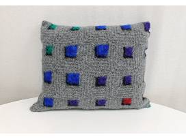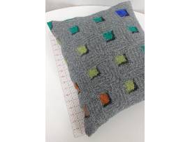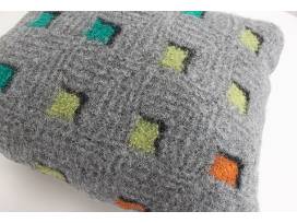 This pillow is made with hand knit Irish Wool, felted with colorful blocks.
