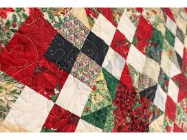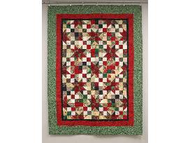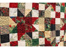 Holiday themed fabric with hidden stars. Quilted with a snowflake pattern.