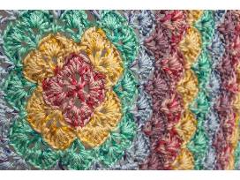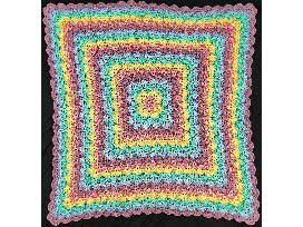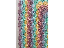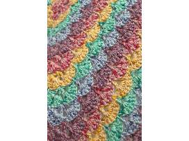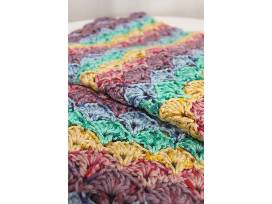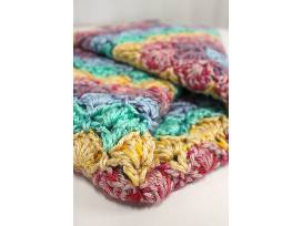 This varigated pastel rainbow blanket features a shell crochet stitch that creates a ruffle-like design. Its soft texture would make it a great baby blanket for a little one or a lap blanket for a rainbow-loving grown up!