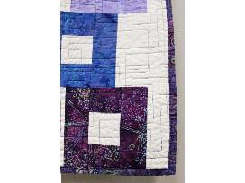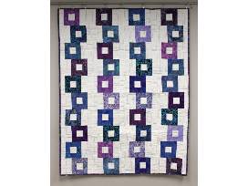 This quilt was created from shades of blue and purple Batik fabrics, with a white background. The pattern is called Gemini, and was designed by Villa Rosa Designs of California. I hope the colors feel calm and soothing.