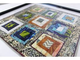We are all a rainbow of what life has to offer. Embrace it! Following a stroke three years ago, I have gone back to art quilts in small dimensions. Rather than a neutral background, I wanted to see how shapes would hold together on a busy background.