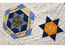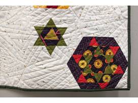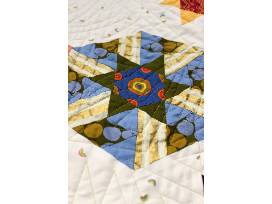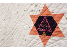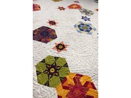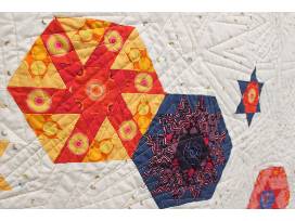 This English Paper Pieced quilt was created together with other sewists in a year-long class at Blue Bar Quilts. The top is entirely hand-sewn.