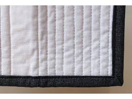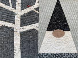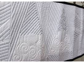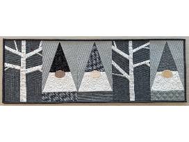 These cute Gnomes will look great on a coffee table or dining table, but it could also be hung on a small wall area. They are so cute! The free motion machine quilting adds extra dimension and interest. The neutral grays work well through the holidays and Wisconsin winter months. This table runner will make a great gift, or treat for yourself, while contributing to a very worthwhile organization.