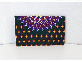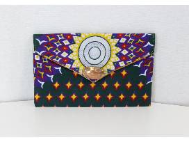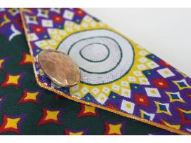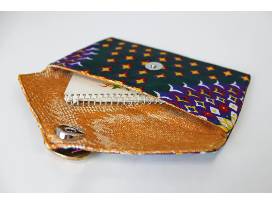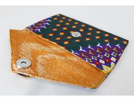 Wallet is fully lined and has interfacing to provide durability. Oval vintage button over magnetic snap. Outer wax fabric from Malawi, Africa.